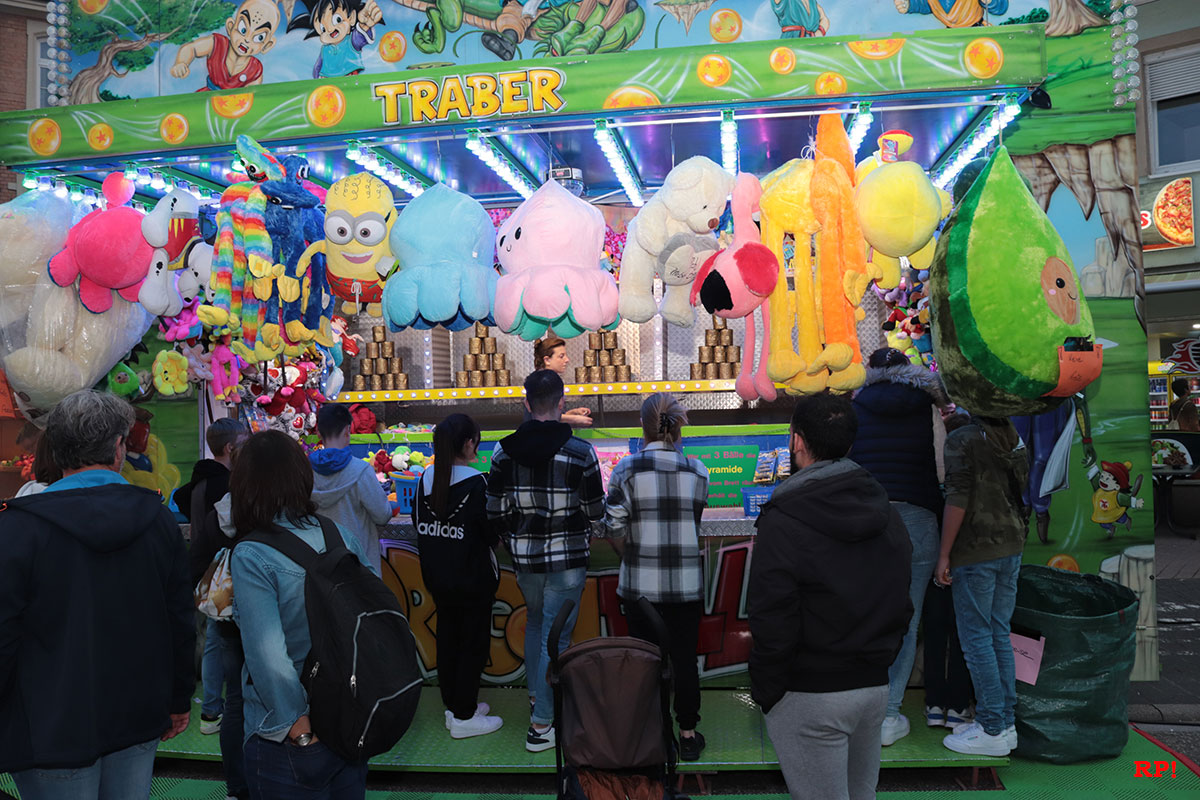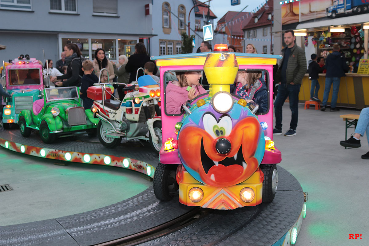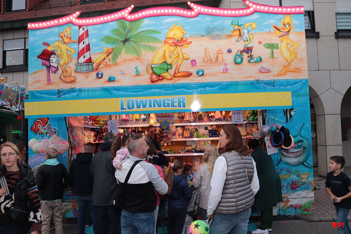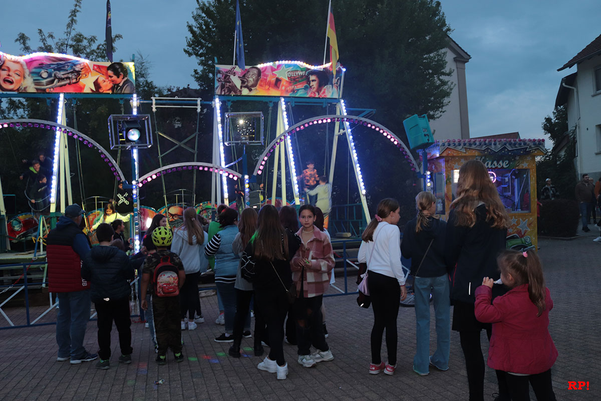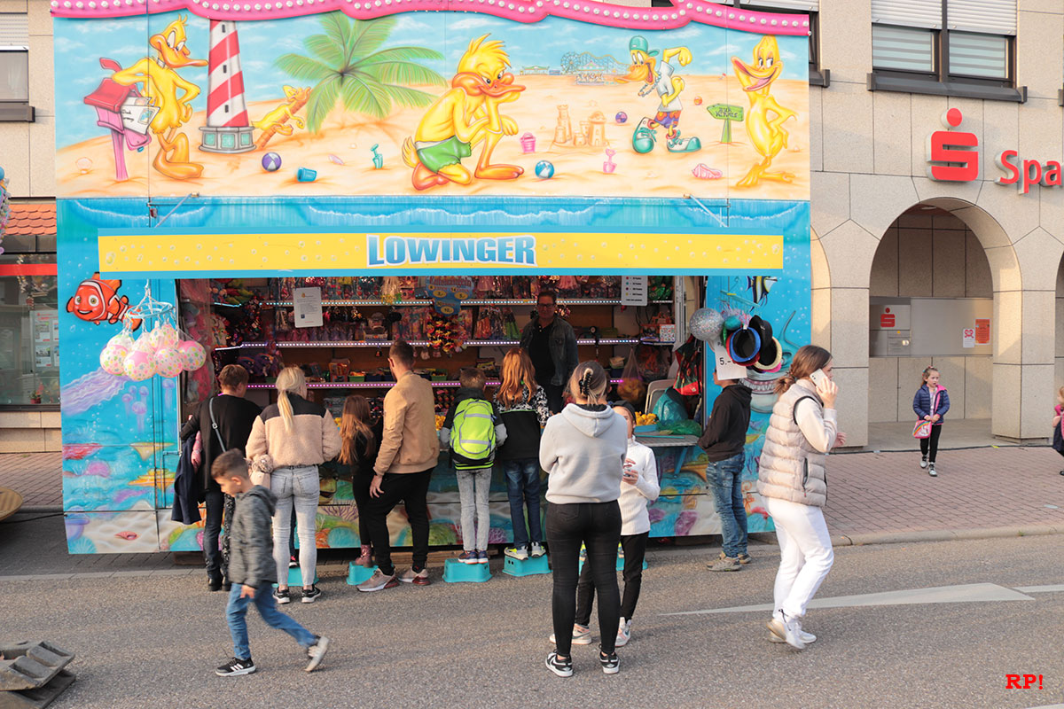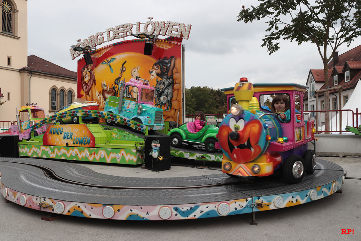 Für die Kinder waren wie üblich Fahrgeschäfte (Kinderkarussell, , König der Löwen, …) geboten, ebenso wie zahlreiche Buden. Ob Entenangeln, Dosen werfen oder Pfeile auf Luftballons werfen, die Kinder hatten sichtlich ihren Spaß und standen mit großen Augen da. Nur wenige Meter von der Kerwe, ein Kinderspielplatz, der ebenso gut besucht und genutzt war.