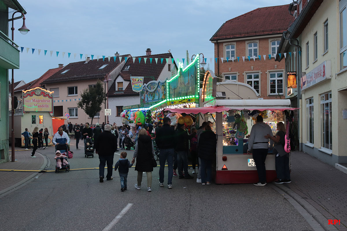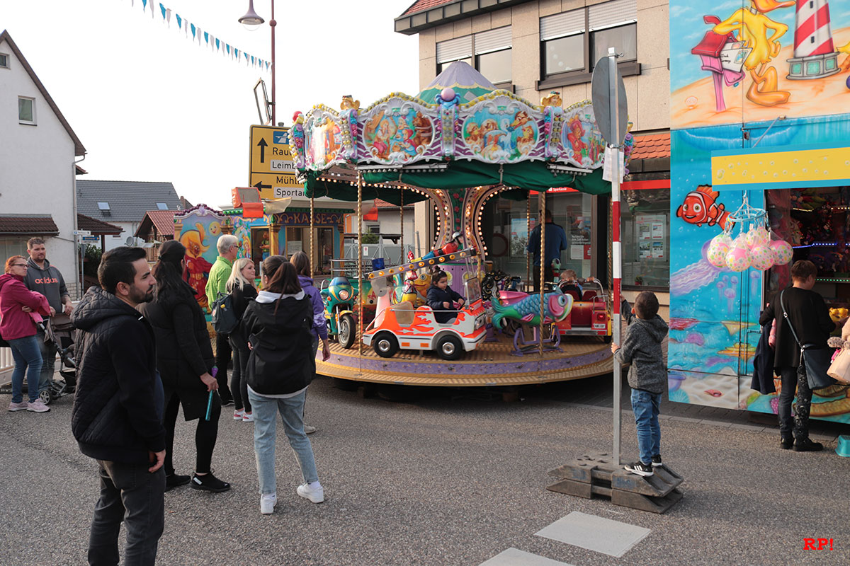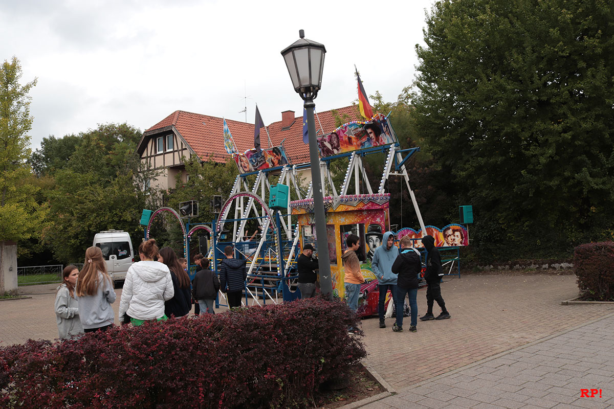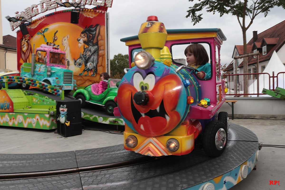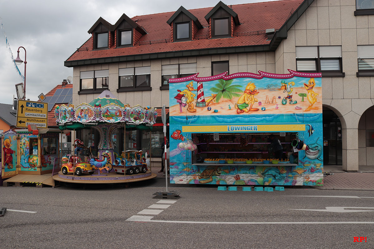 Für die Kinder waren wie üblich Fahrgeschäfte (Kinderkarussell, , König der Löwen, …) geboten, ebenso wie zahlreiche Buden. Ob Entenangeln, Dosen werfen oder Pfeile auf Luftballons werfen, die Kinder hatten sichtlich ihren Spaß und standen mit großen Augen da. Nur wenige Meter von der Kerwe, ein Kinderspielplatz, der ebenso gut besucht und genutzt war.