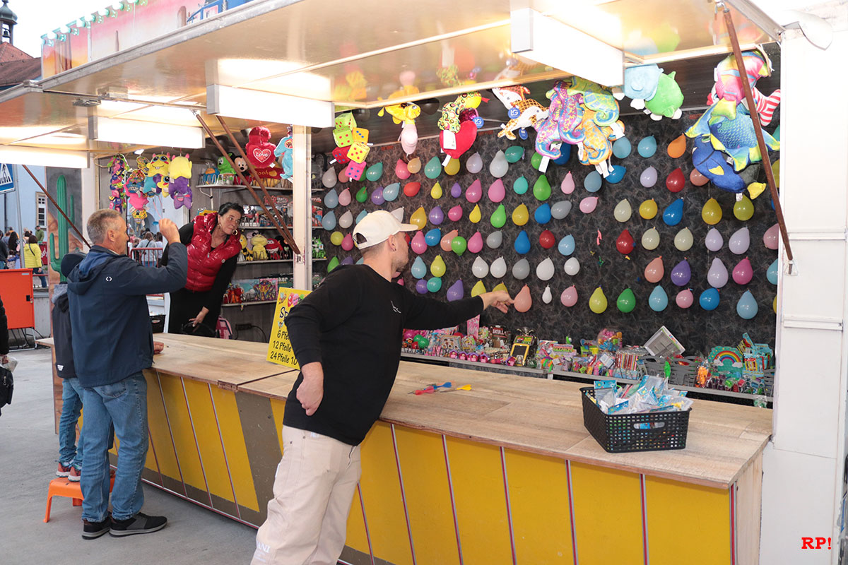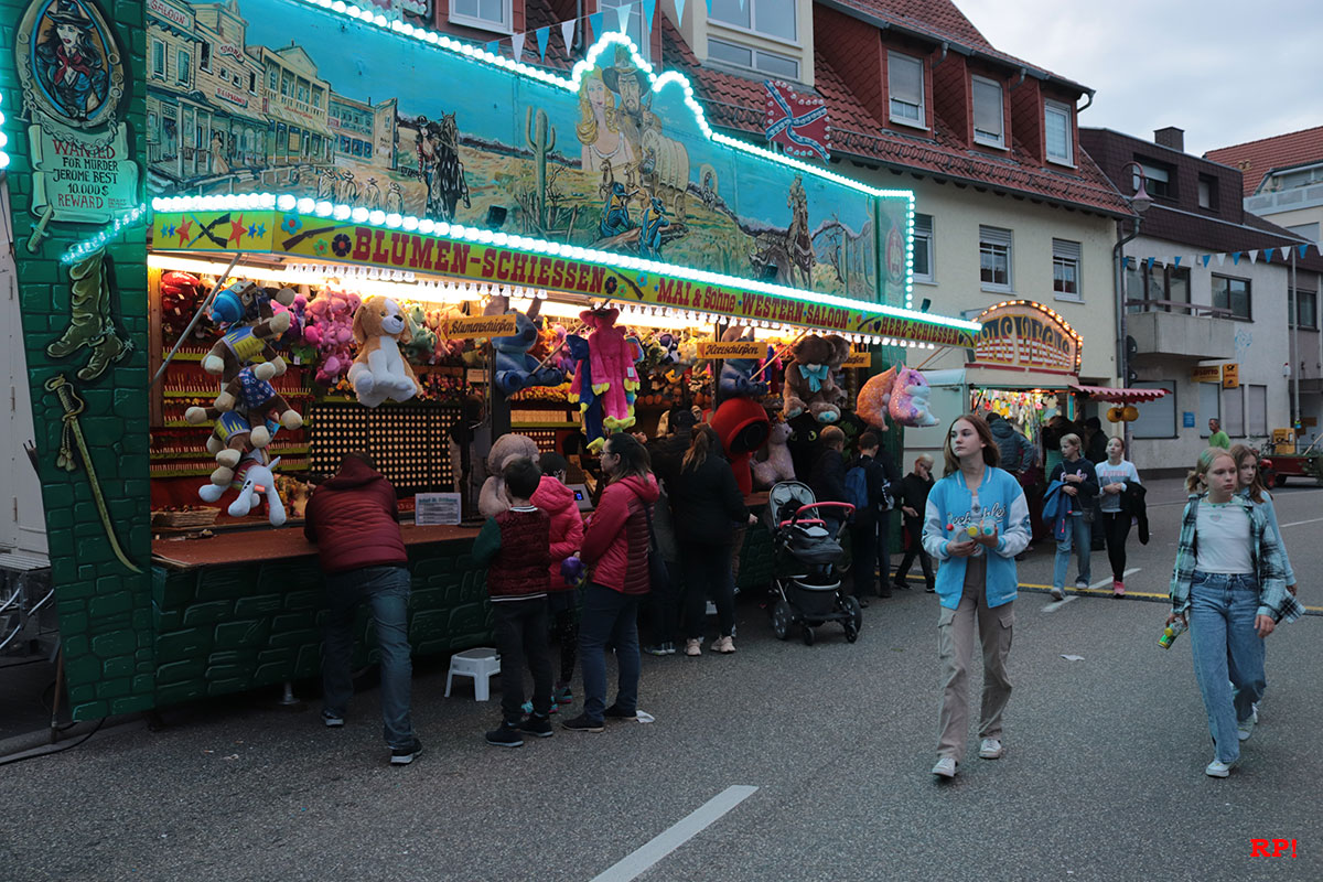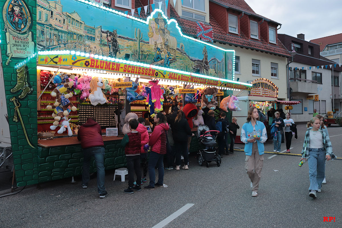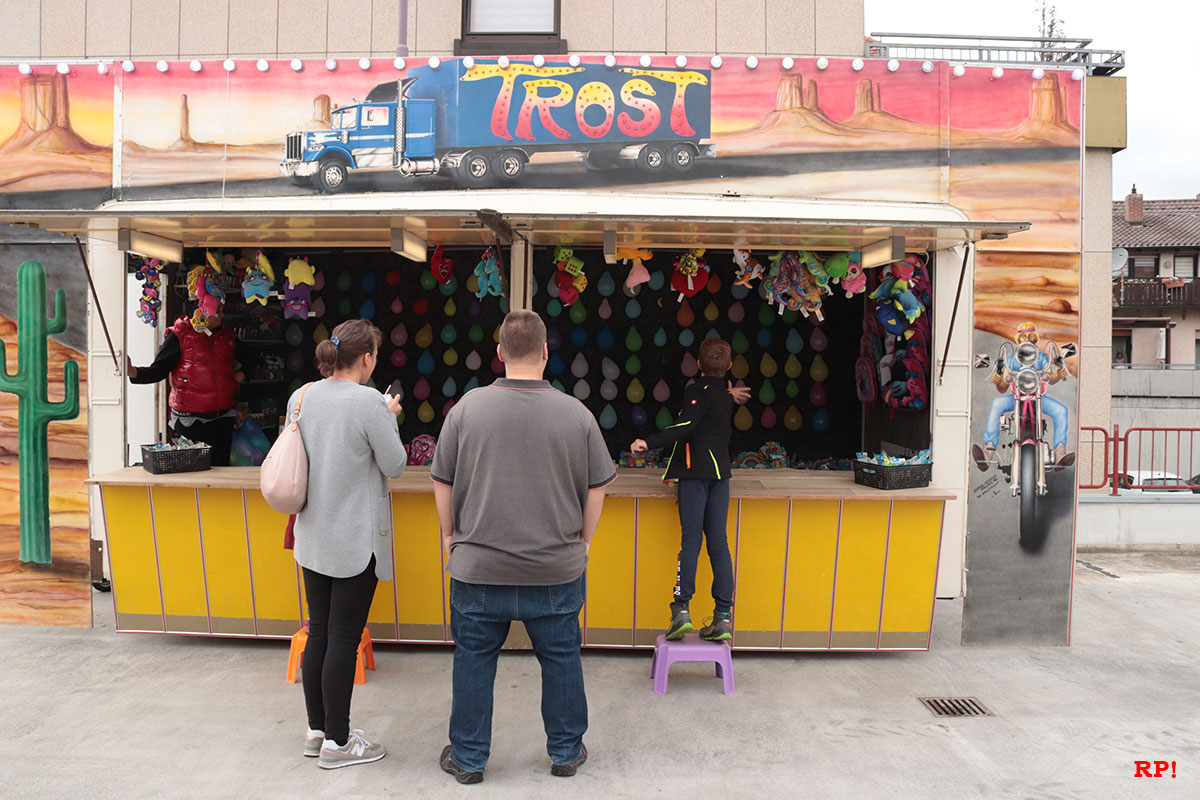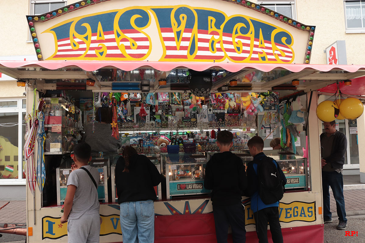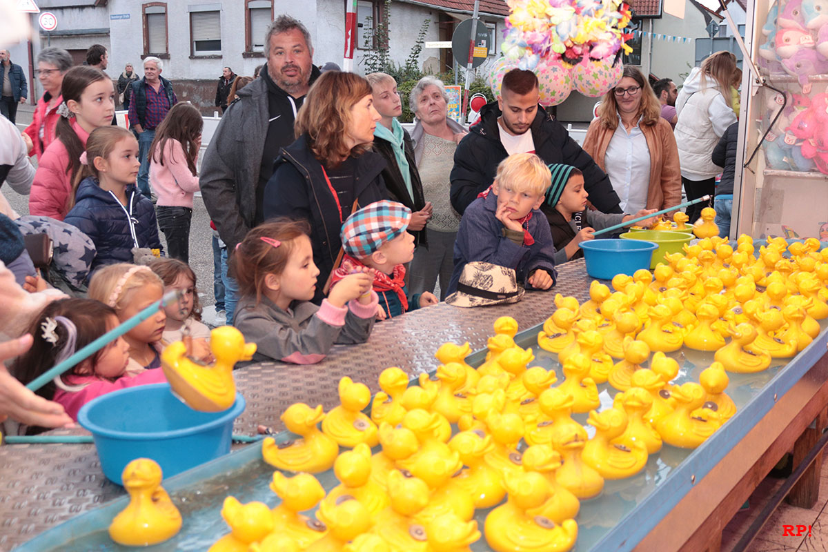 Für die Kinder waren wie üblich Fahrgeschäfte (Kinderkarussell, , König der Löwen, …) geboten, ebenso wie zahlreiche Buden. Ob Entenangeln, Dosen werfen oder Pfeile auf Luftballons werfen, die Kinder hatten sichtlich ihren Spaß und standen mit großen Augen da. Nur wenige Meter von der Kerwe, ein Kinderspielplatz, der ebenso gut besucht und genutzt war.