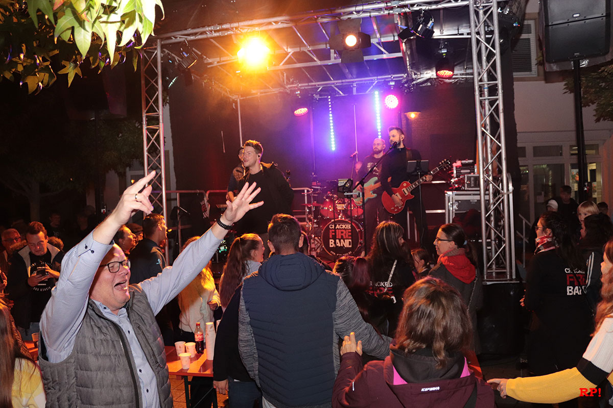 Die Band Cracked Fire wurde von einer Menschenmenge, die den gesamten Platz befüllte, erwartet. In der Ansprache des Bürgermeisters war noch die Rede von bestem Kerwe-Wetter, doch schon dem Soundcheck der Band fielen erste Regentröpfchen. Die Band begann gegen 20:30 Uhr zu spielen, während in der Ferne schon die ersten Blitze zu sehen waren.