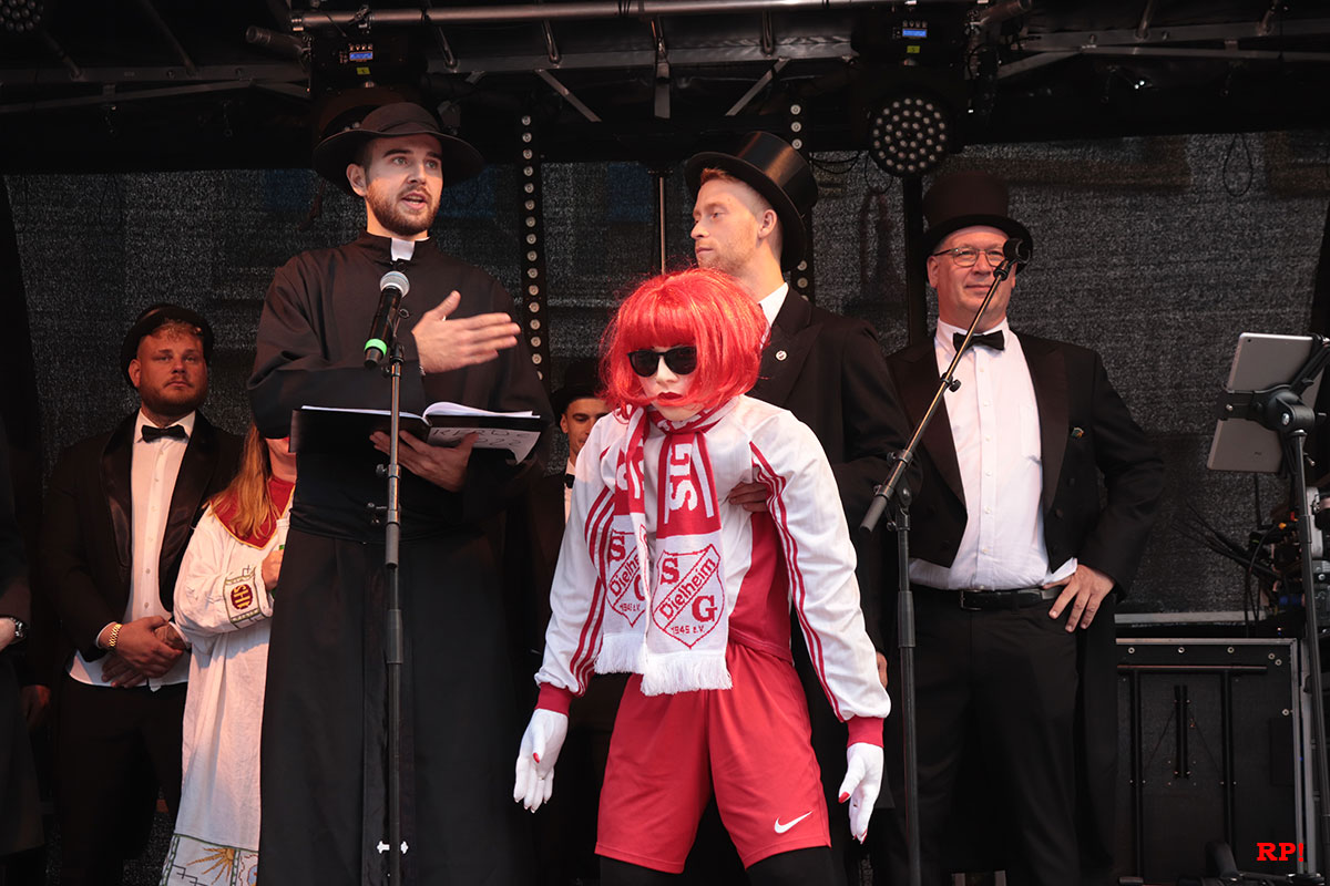 Die Sportgemeinschaft als Kerweausrichter präsentierte ihre unvergleichliche Kerweschlumpel. Wie sie heißt? Das erfahren Sie auf der Kerwe in Dielheim! Wir verraten es an dieser Stelle nicht!