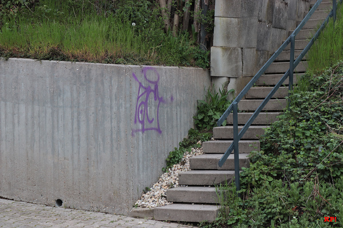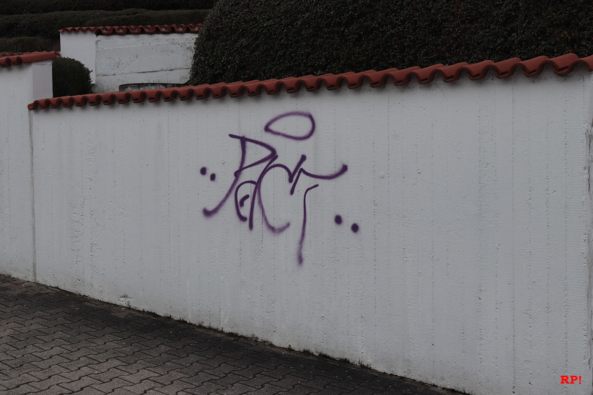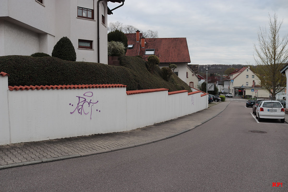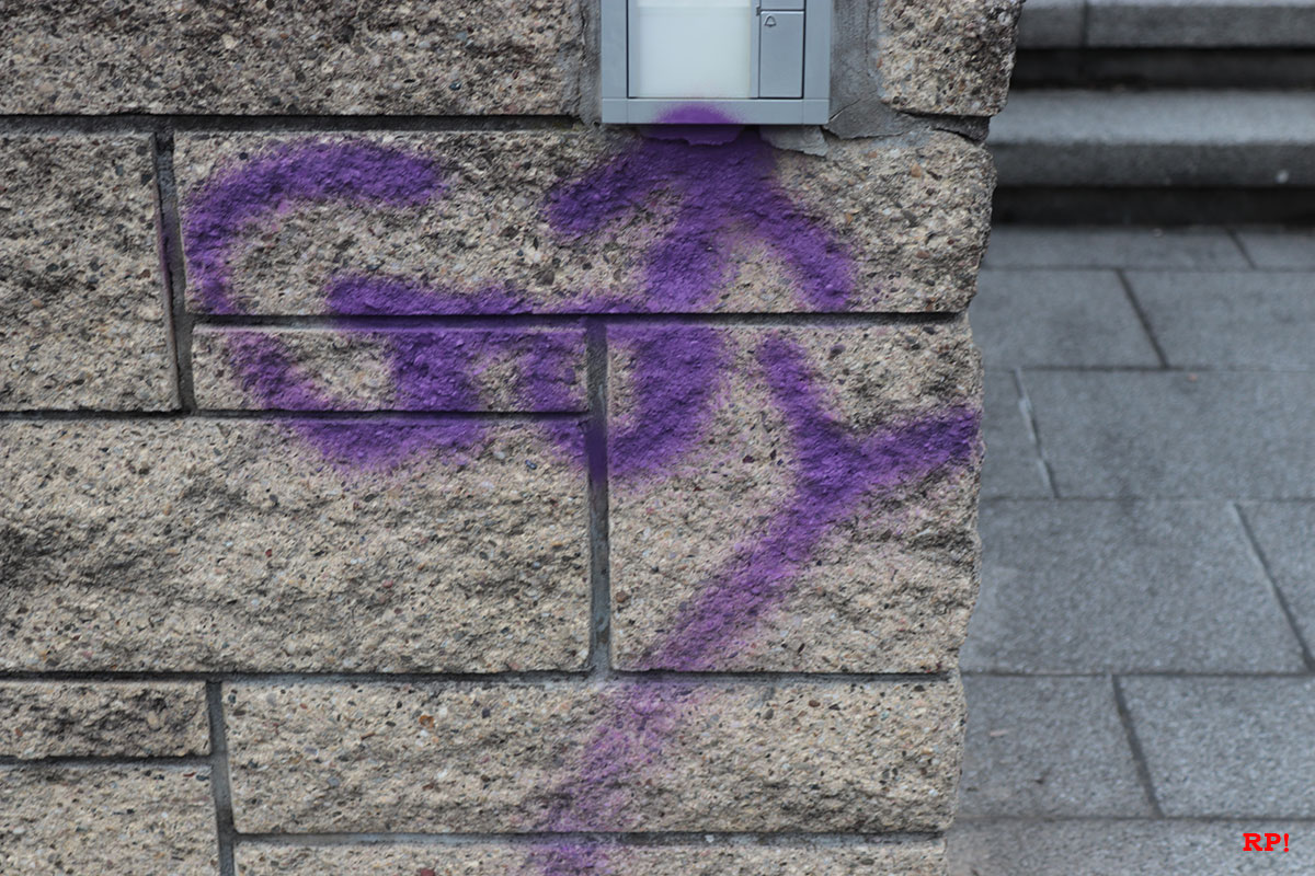 An einem Wohnwagen auf dem Sportplatz wurden ebenfalls lilafarbene Schmierereien entdeckt, heißt es dem Polizeibericht zufolge. Augenzeugen berichteten von einer Gruppe lärmender Jugendlicher gegen 4 Uhr morgens. Ob diese Gruppe für die Graffitis verantwortlich ist und ob es einen Zusammenhang mit den Farbschmierereien in Wiesloch gibt (siehe unten), wird von der Polizei untersucht.