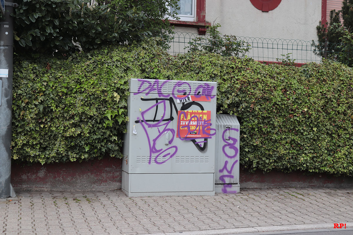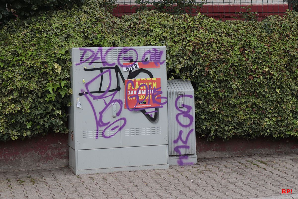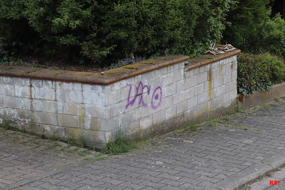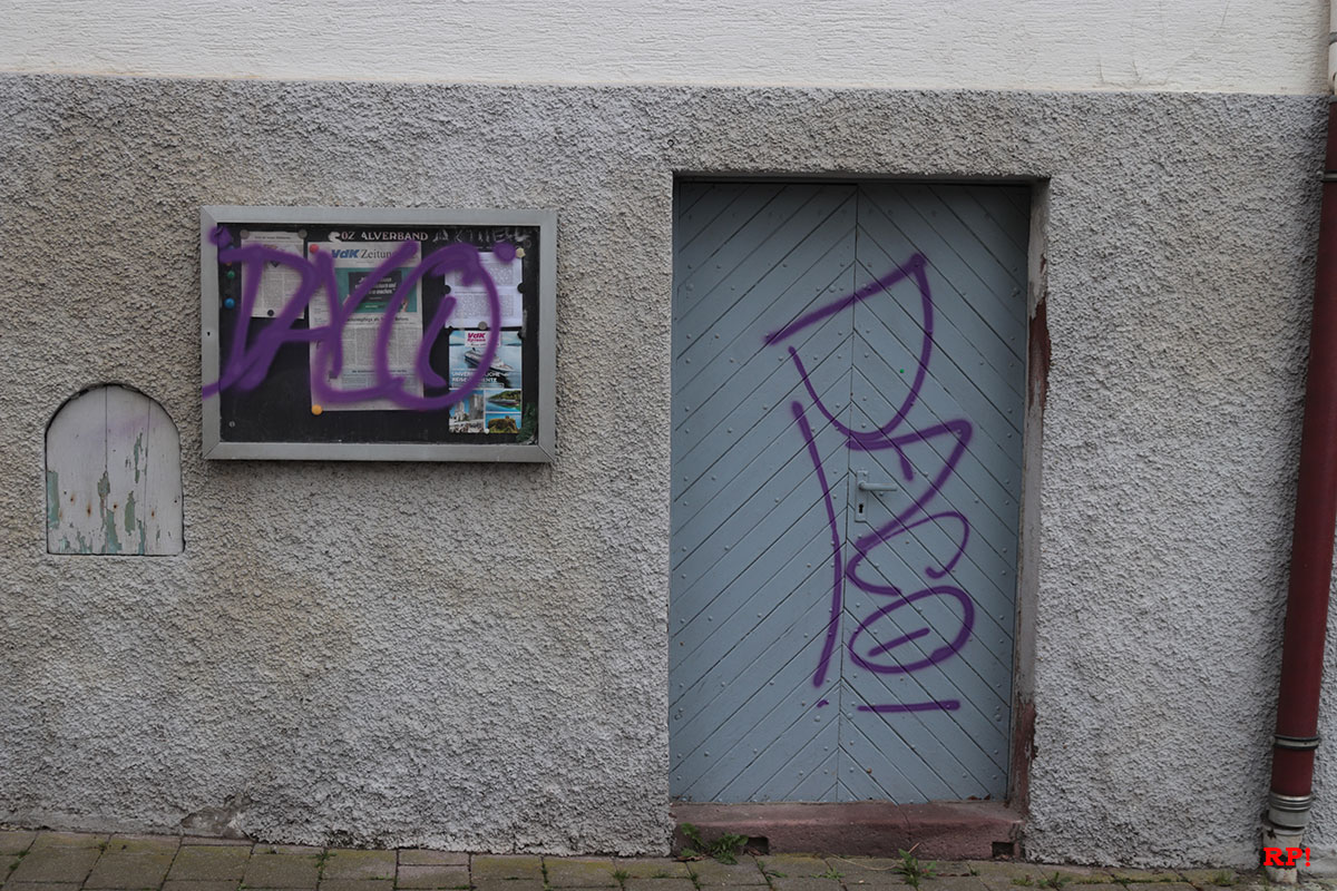 An einem Wohnwagen auf dem Sportplatz wurden ebenfalls lilafarbene Schmierereien entdeckt, heißt es dem Polizeibericht zufolge. Augenzeugen berichteten von einer Gruppe lärmender Jugendlicher gegen 4 Uhr morgens. Ob diese Gruppe für die Graffitis verantwortlich ist und ob es einen Zusammenhang mit den Farbschmierereien in Wiesloch gibt (siehe unten), wird von der Polizei untersucht.