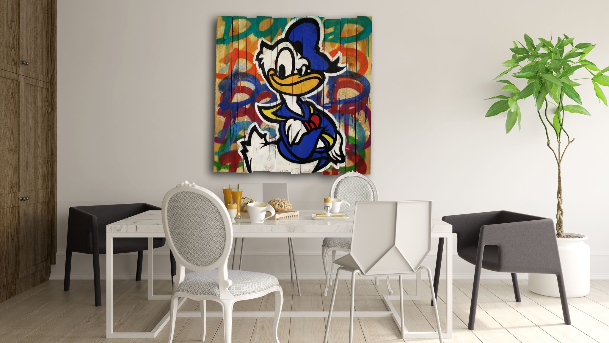 Graffitis auf Indoor-Objekten – Käuflich erwerbbare Kunstwerke