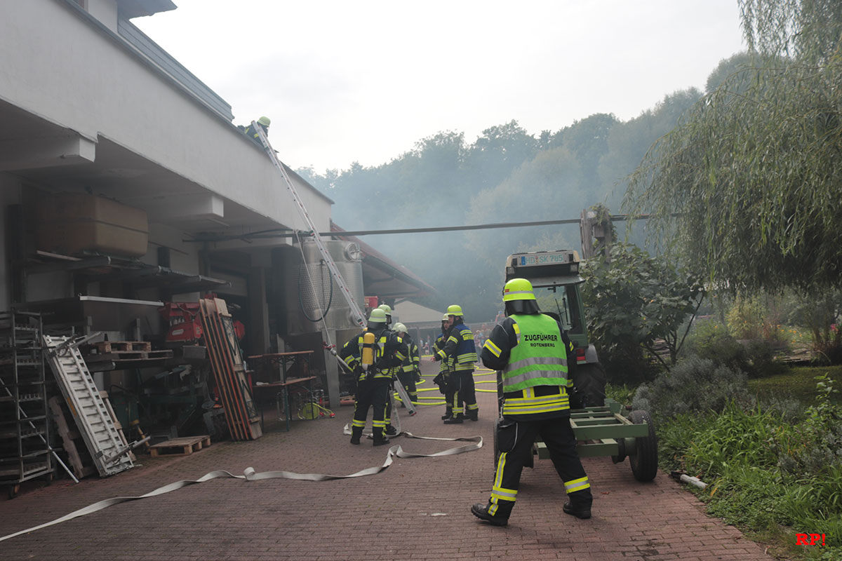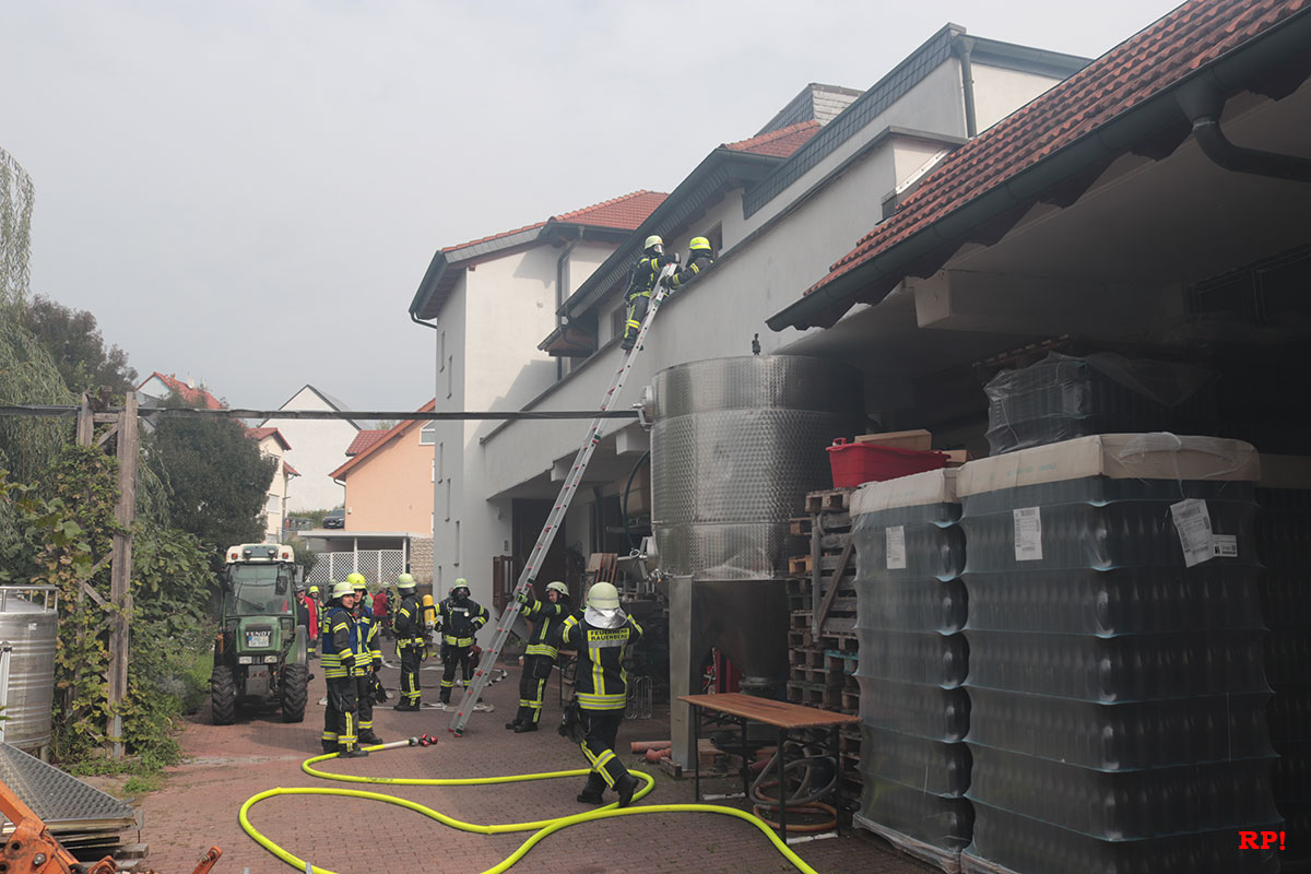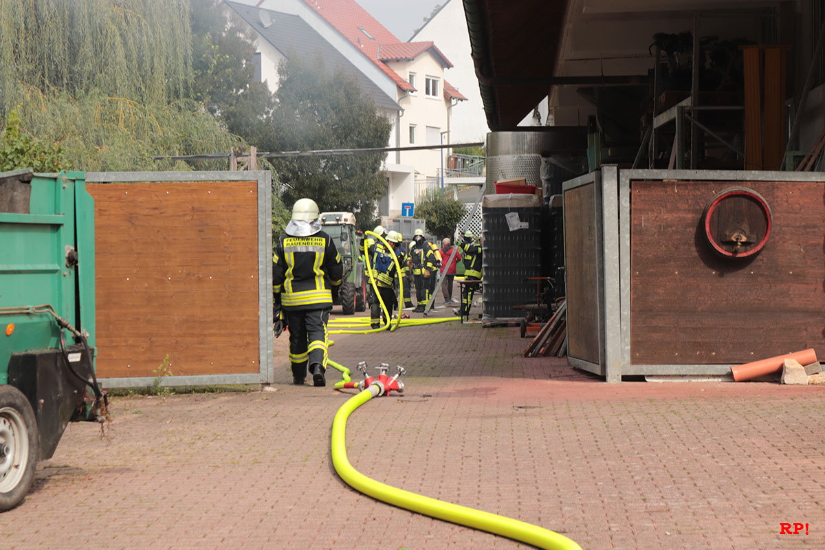 Am heutigen Samstag führte die Feuerwehr Rauenberg ihre Jahreshauptübung durch. Das Übungsszenario war wie folgt. Auf dem Flachdach des Weinkellergebäudes des Gutshofs Weingut Menges ist wegen Reparaturarbeiten ein Feuer ausgebrochen.